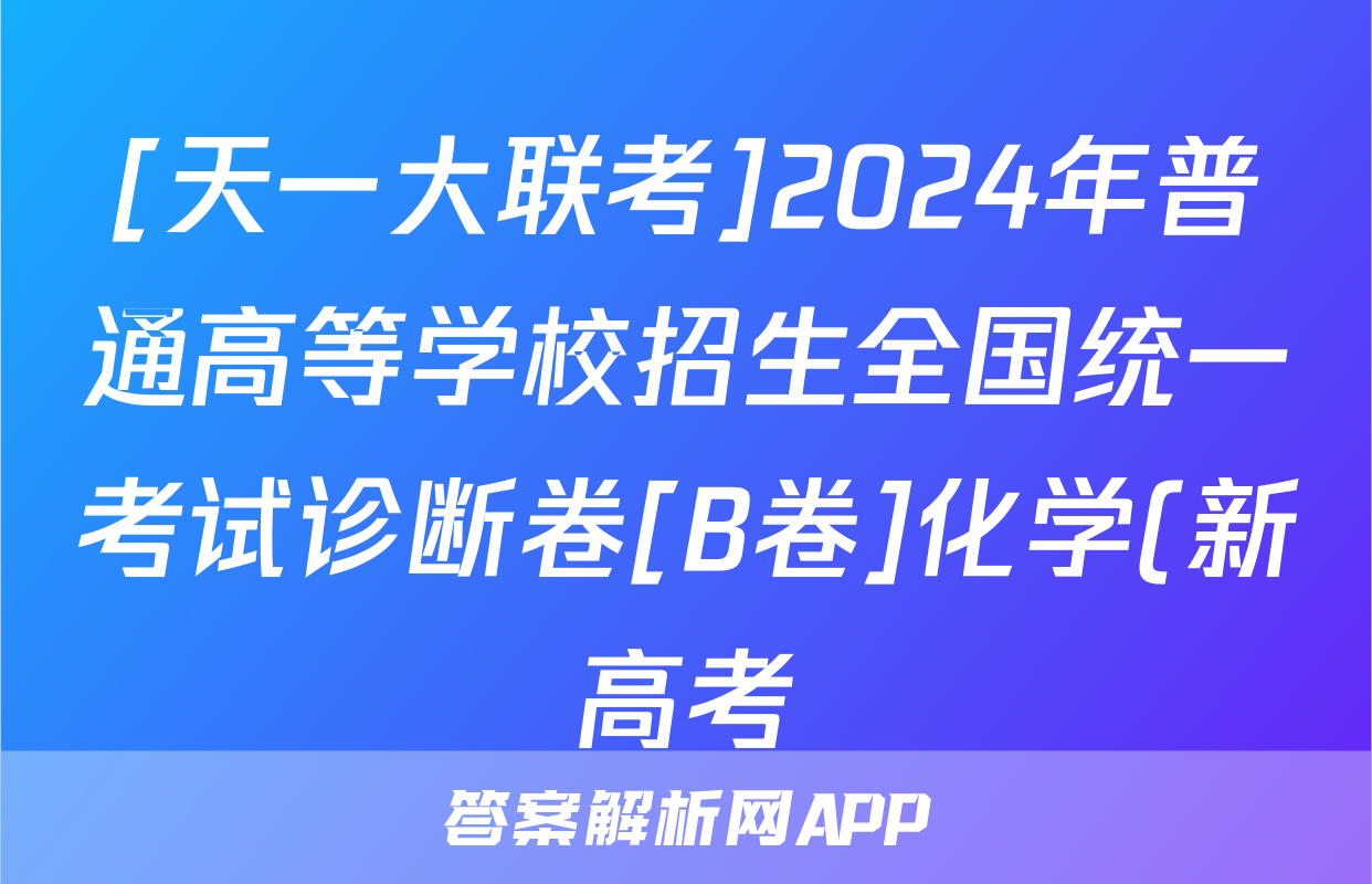 [天一大联考]2024年普通高等学校招生全国统一考试诊断卷[B卷]化学(新高考)试题正在持续更新,本期2024衡中同卷单元卷答案网为大家整理了相关试题及答案,供大家查缺补漏,高效提升成绩。