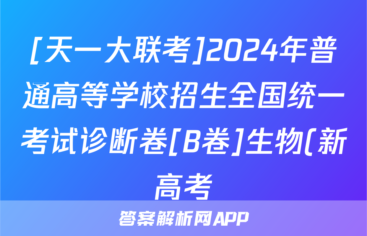 [天一大联考]2024年普通高等学校招生全国统一考试诊断卷[B卷]生物(新高考)试题正在持续更新,本期2024衡中同卷单元卷答案网为大家整理了相关试题及答案,供大家查缺补漏,高效提升成绩。