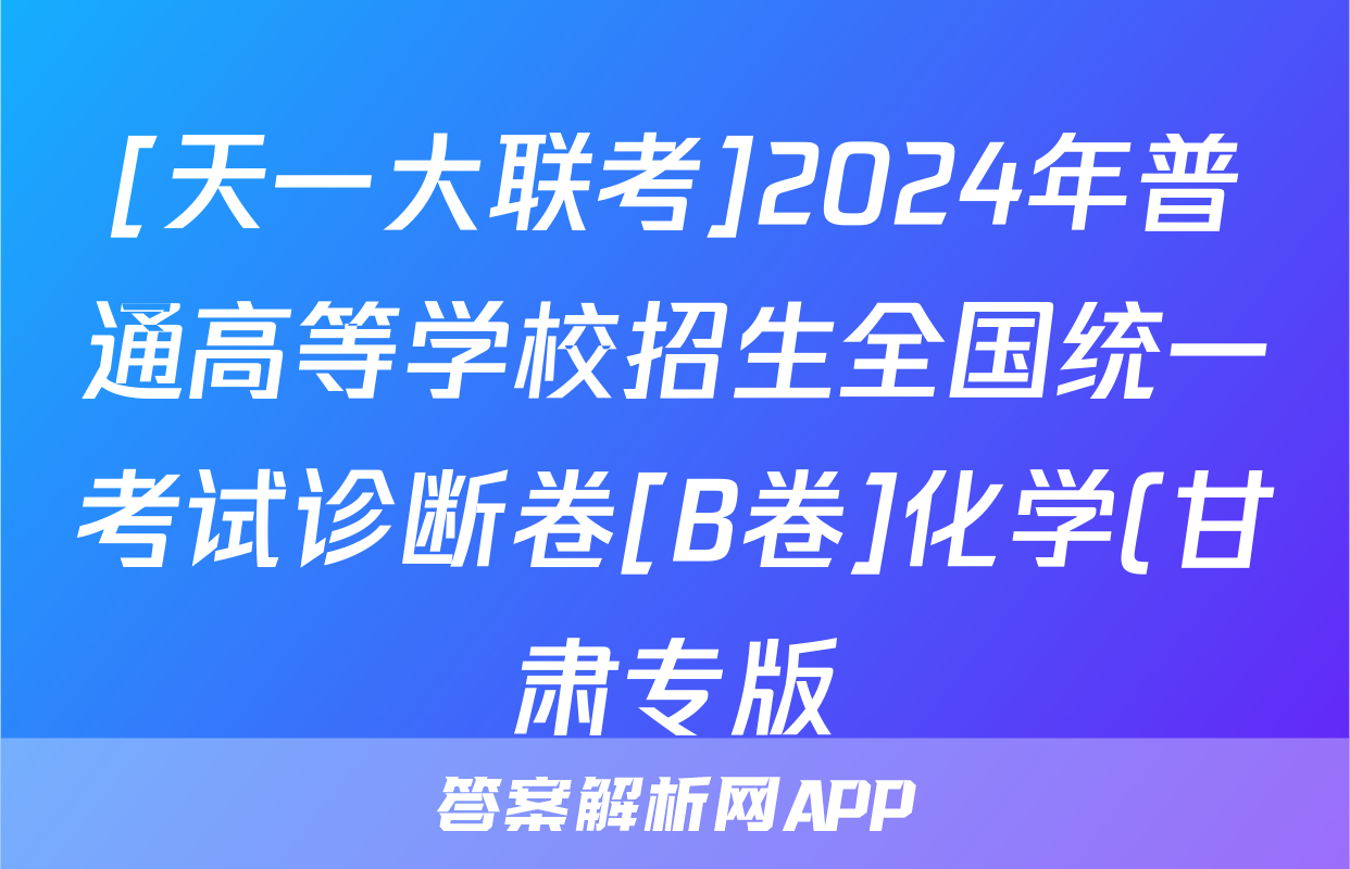 [天一大联考]2024年普通高等学校招生全国统一考试诊断卷[B卷]化学(甘肃专版)答案正在持续更新,本期2024衡中同卷单元卷答案网为大家整理了相关试题及答案,供大家查缺补漏,高效提升成绩。