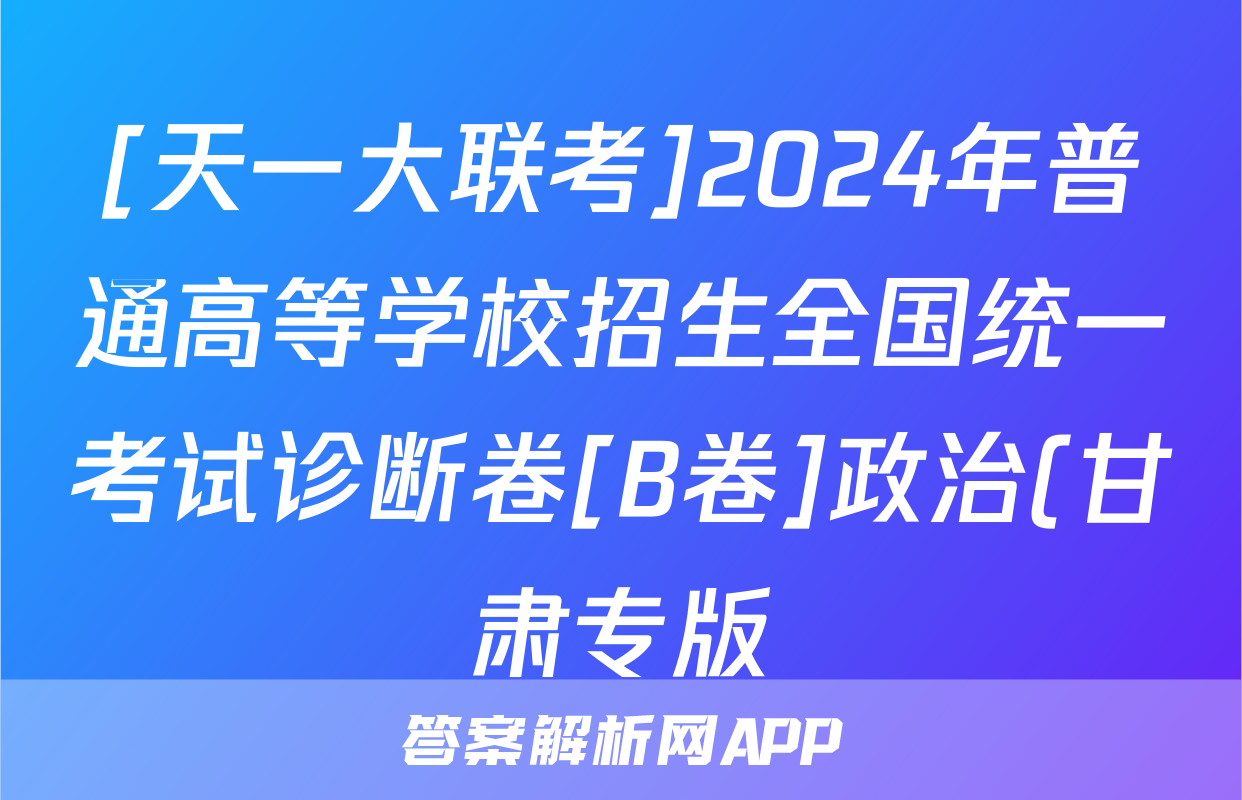 [天一大联考]2024年普通高等学校招生全国统一考试诊断卷[B卷]政治(甘肃专版)答案