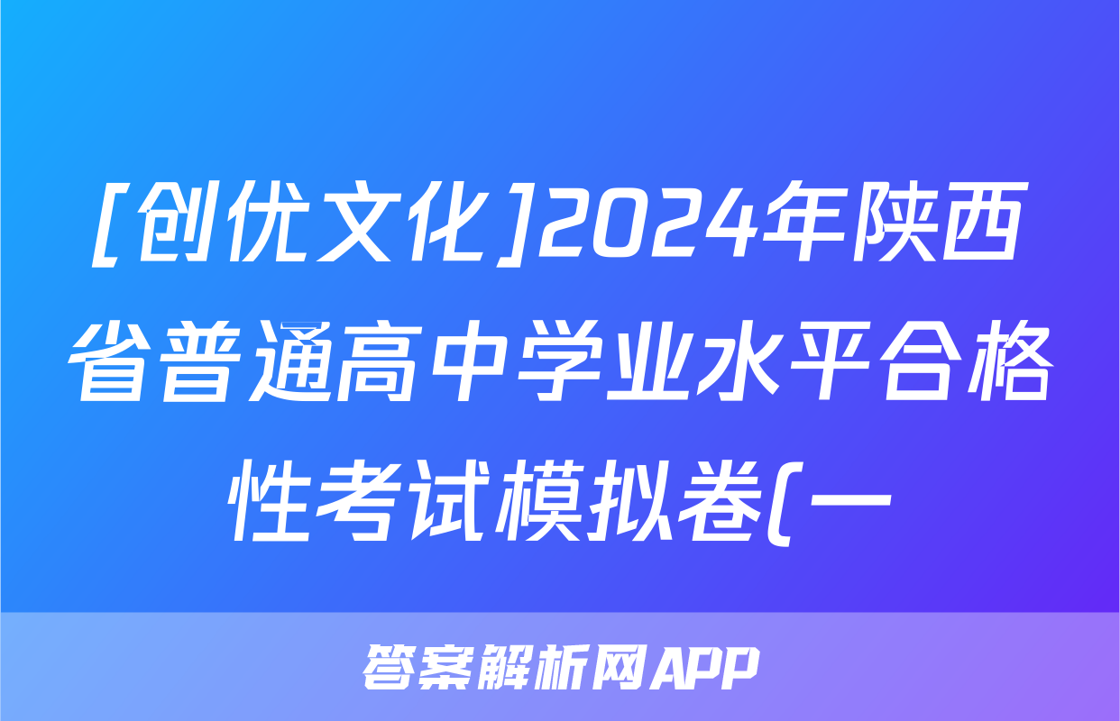 [创优文化]2024年陕西省普通高中学业水平合格性考试模拟卷(一)1试题(语文)正在持续更新,本期2024衡中同卷单元卷答案网为大家整理了相关试题及答案,供大家查缺补漏,高效提升成绩。