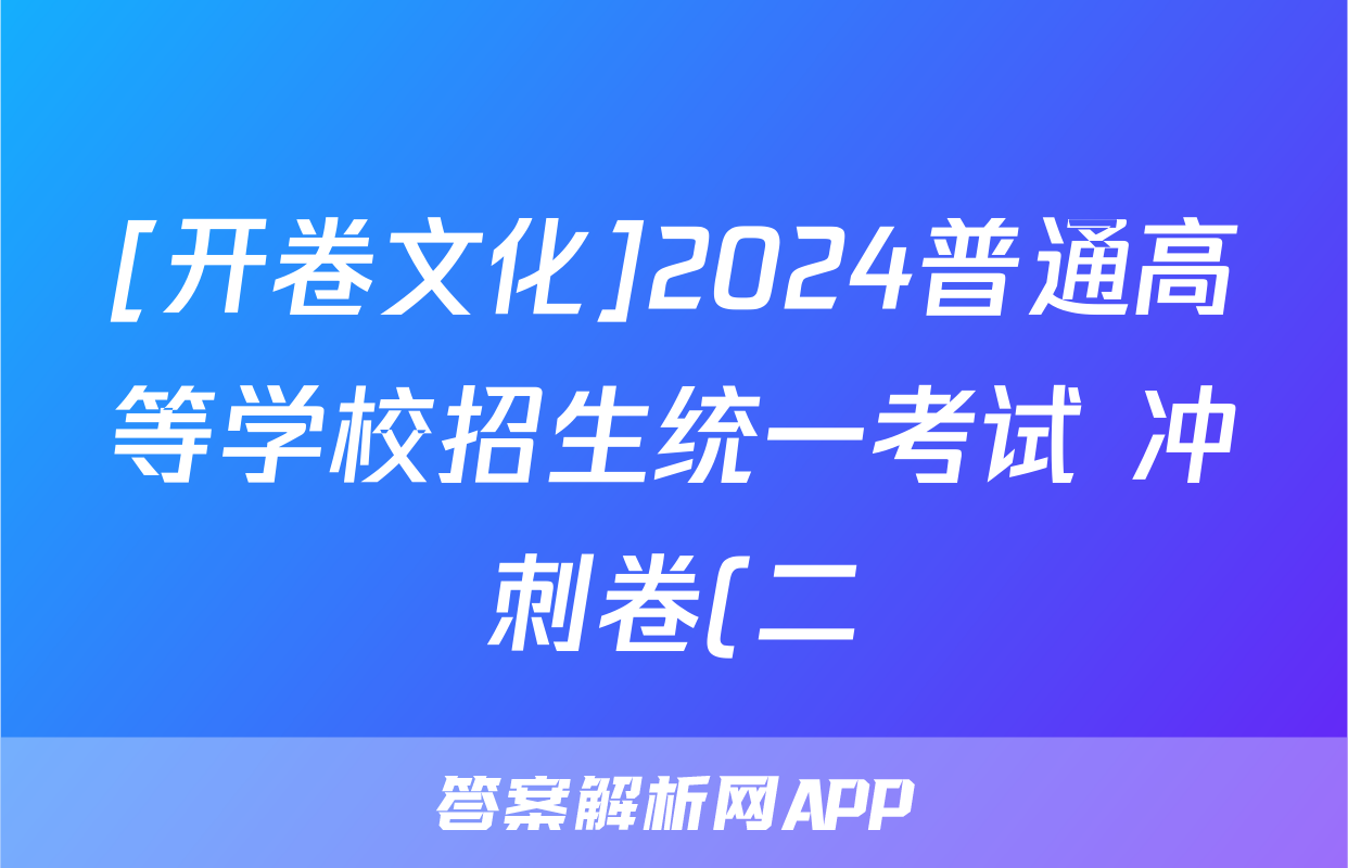 [开卷文化]2024普通高等学校招生统一考试 冲刺卷(二)2答案(化学)