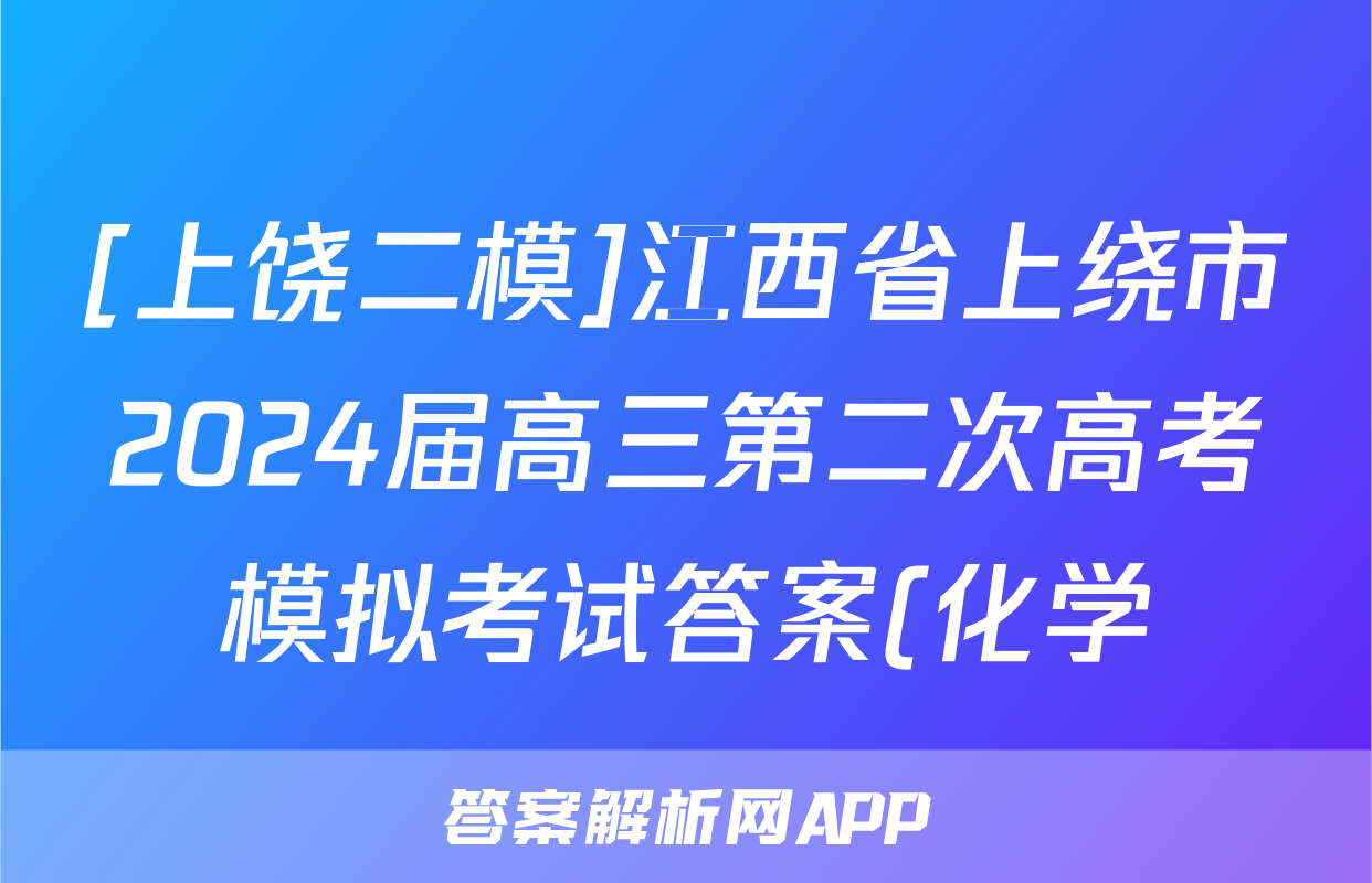 [上饶二模]江西省上绕市2024届高三第二次高考模拟考试答案(化学)正在持续更新,本期2024衡中同卷单元卷答案网为大家整理了相关试题及答案,供大家查缺补漏,高效提升成绩。