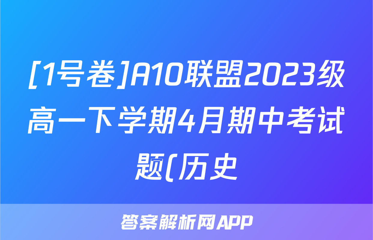 [1号卷]A10联盟2023级高一下学期4月期中考试题(历史)