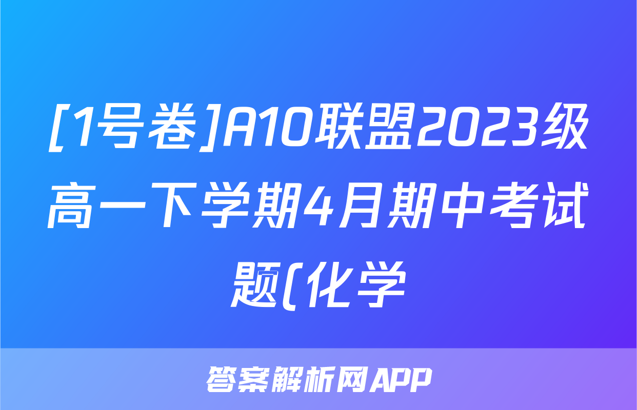 [1号卷]A10联盟2023级高一下学期4月期中考试题(化学)