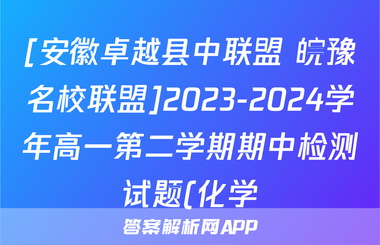 [安徽卓越县中联盟 皖豫名校联盟]2023-2024学年高一第二学期期中检测试题(化学)