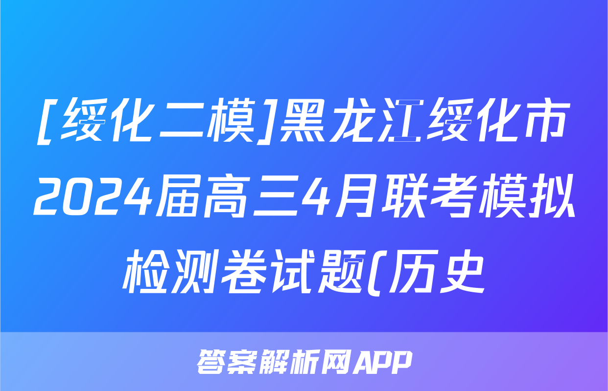 [绥化二模]黑龙江绥化市2024届高三4月联考模拟检测卷试题(历史)