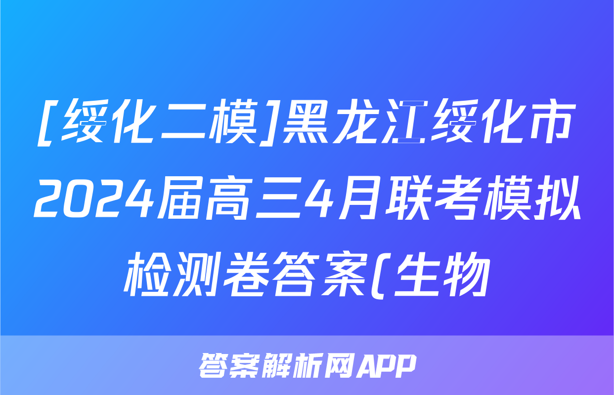 [绥化二模]黑龙江绥化市2024届高三4月联考模拟检测卷答案(生物)