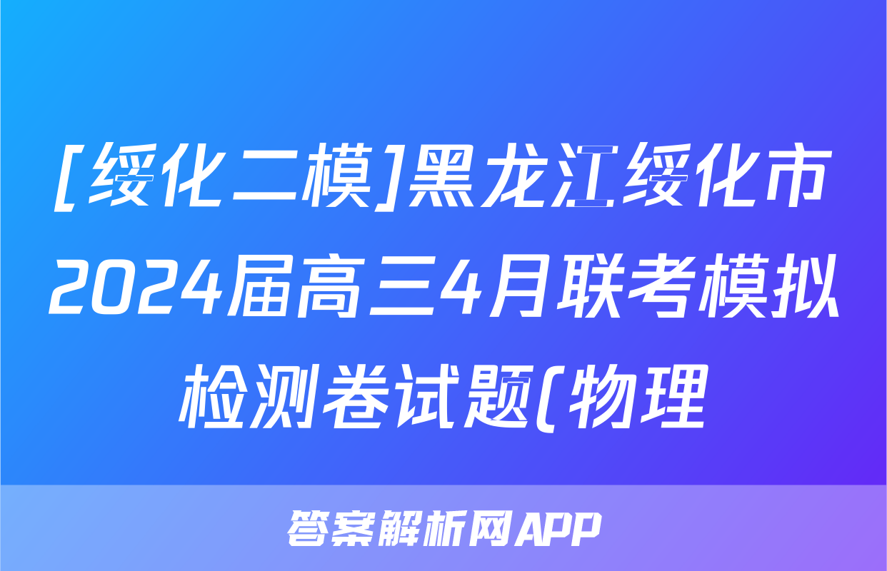 [绥化二模]黑龙江绥化市2024届高三4月联考模拟检测卷试题(物理)