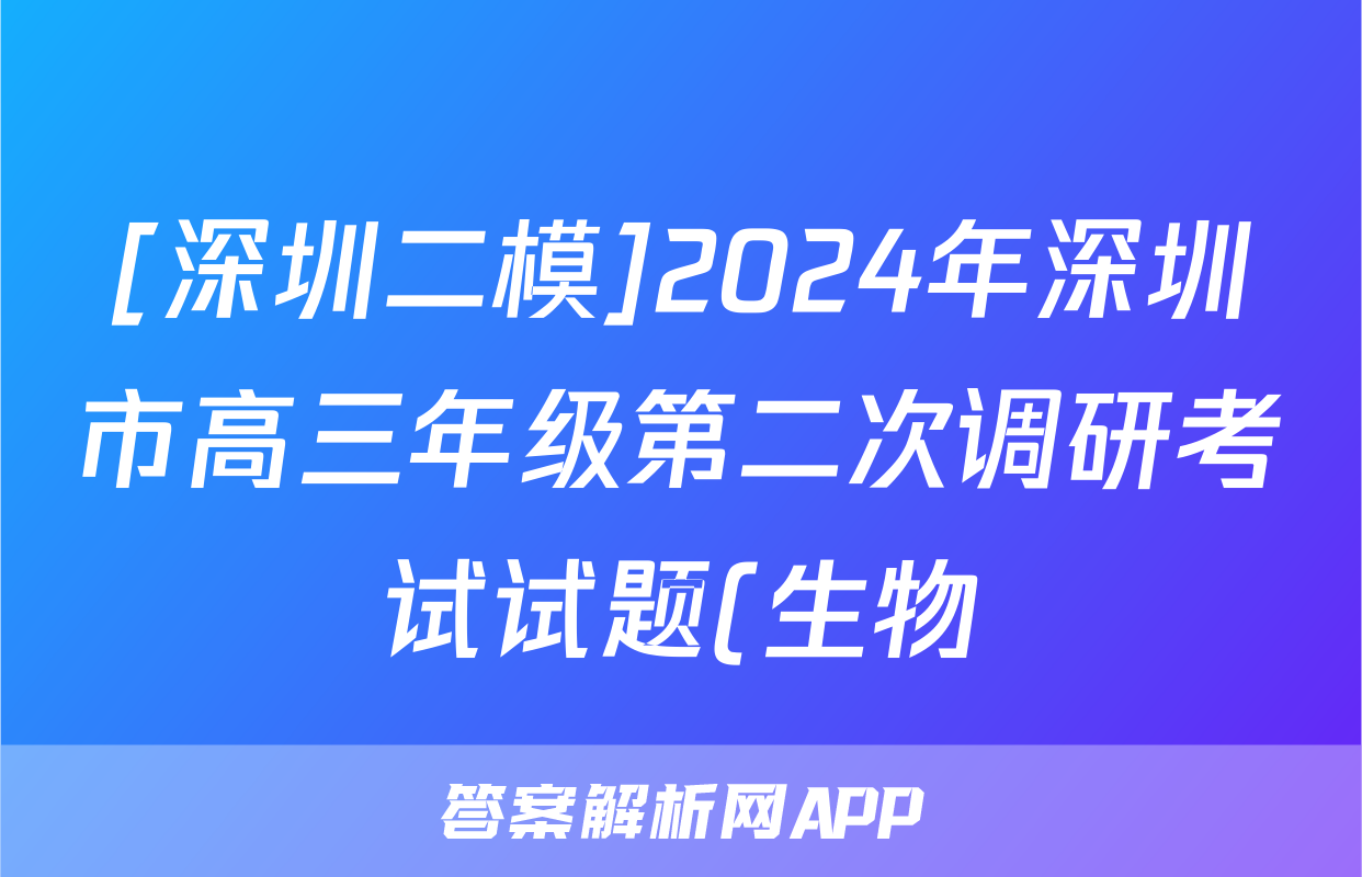[深圳二模]2024年深圳市高三年级第二次调研考试试题(生物)
