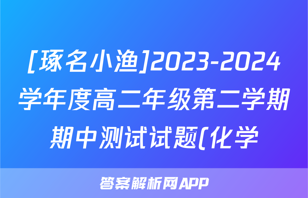 [琢名小渔]2023-2024学年度高二年级第二学期期中测试试题(化学)