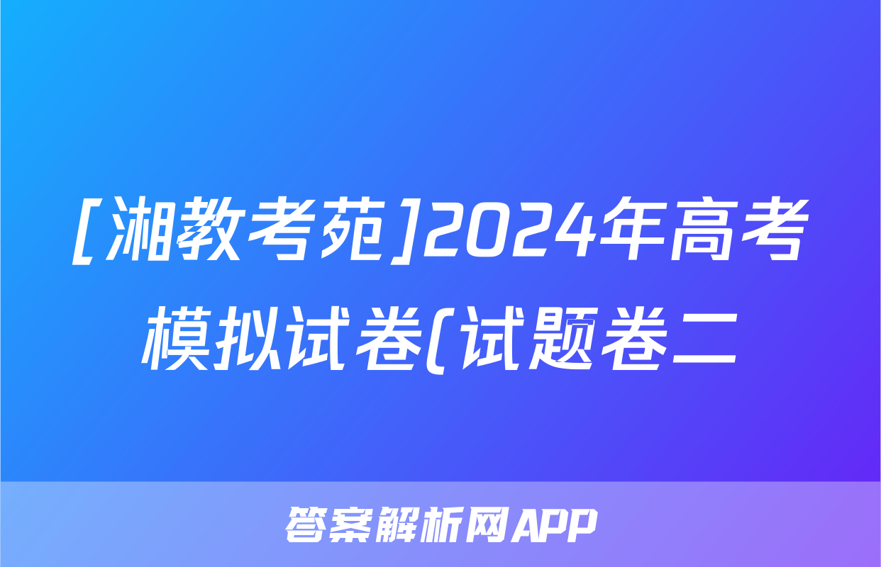 [湘教考苑]2024年高考模拟试卷(试题卷二)试题(历史)正在持续更新,本期2024衡中同卷单元卷答案网为大家整理了相关试题及答案,供大家查缺补漏,高效提升成绩。