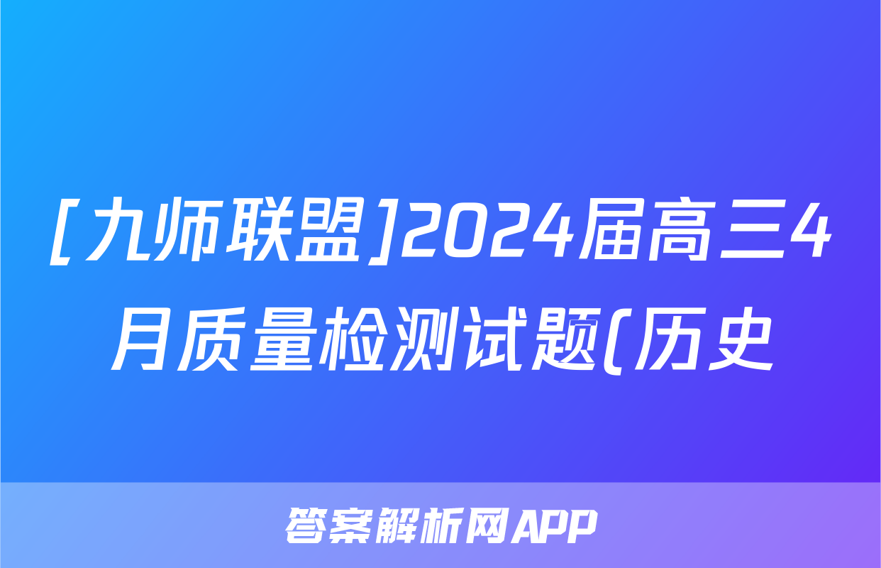 [九师联盟]2024届高三4月质量检测试题(历史)