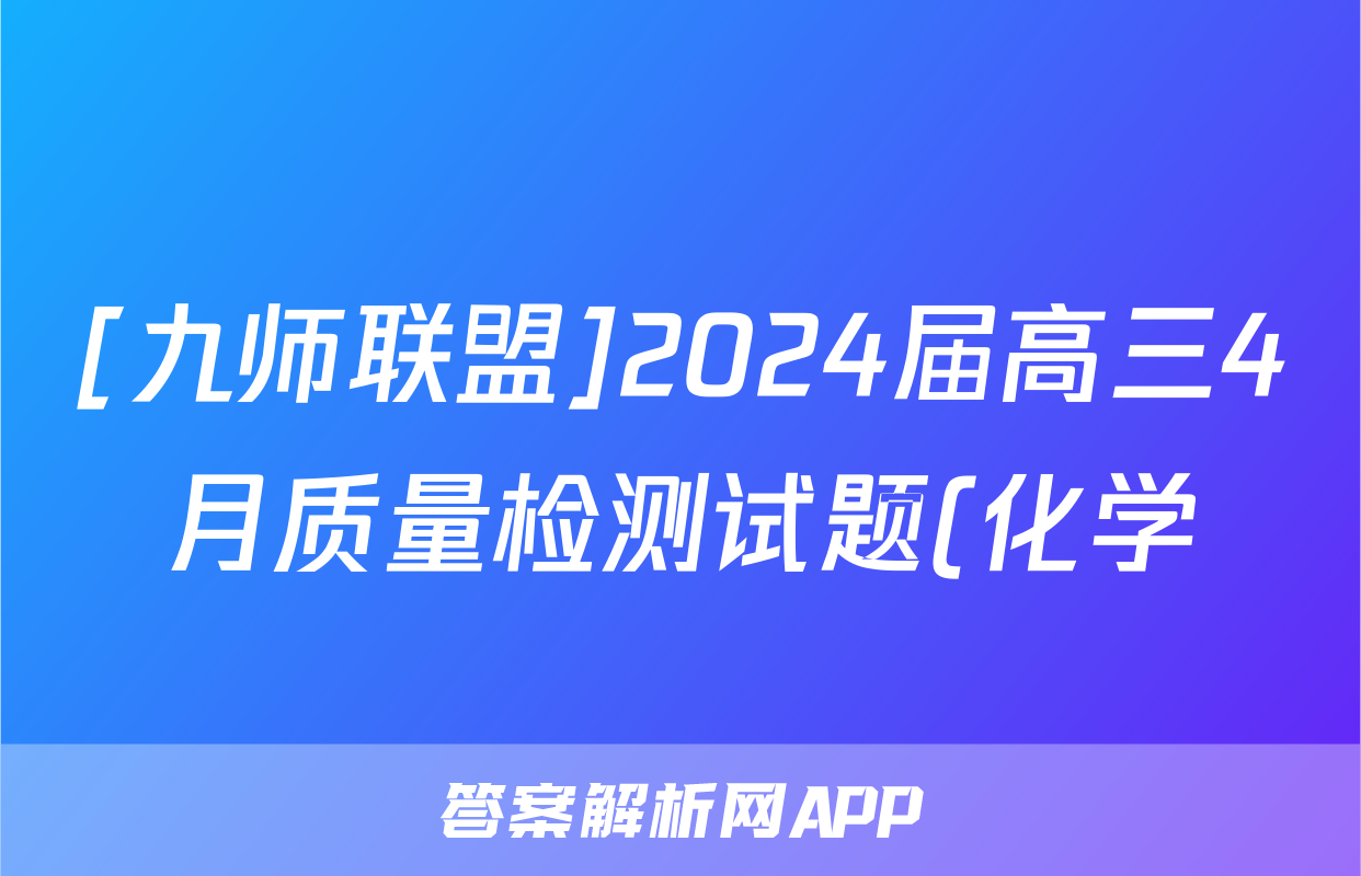 1、[九师联盟]2024届高三4月质量检测答案(化学)