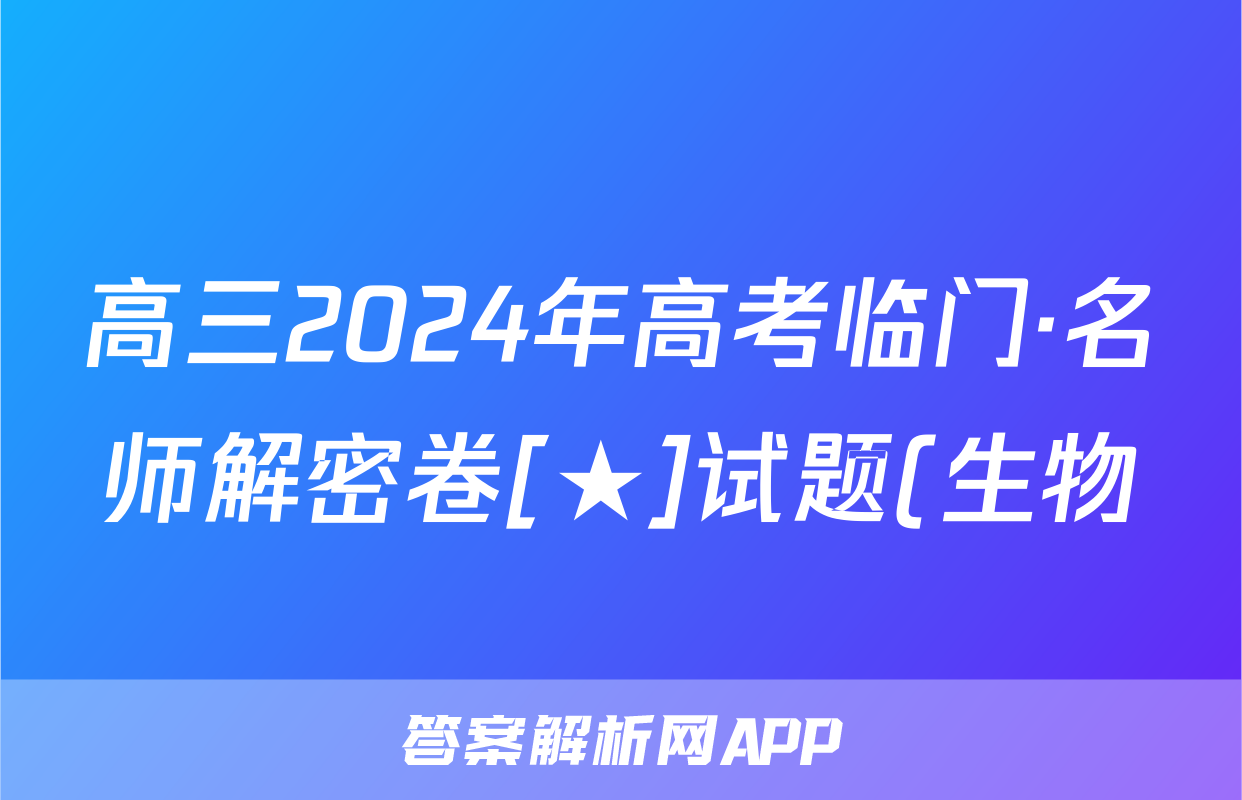 高三2024年高考临门·名师解密卷[★]试题(生物)