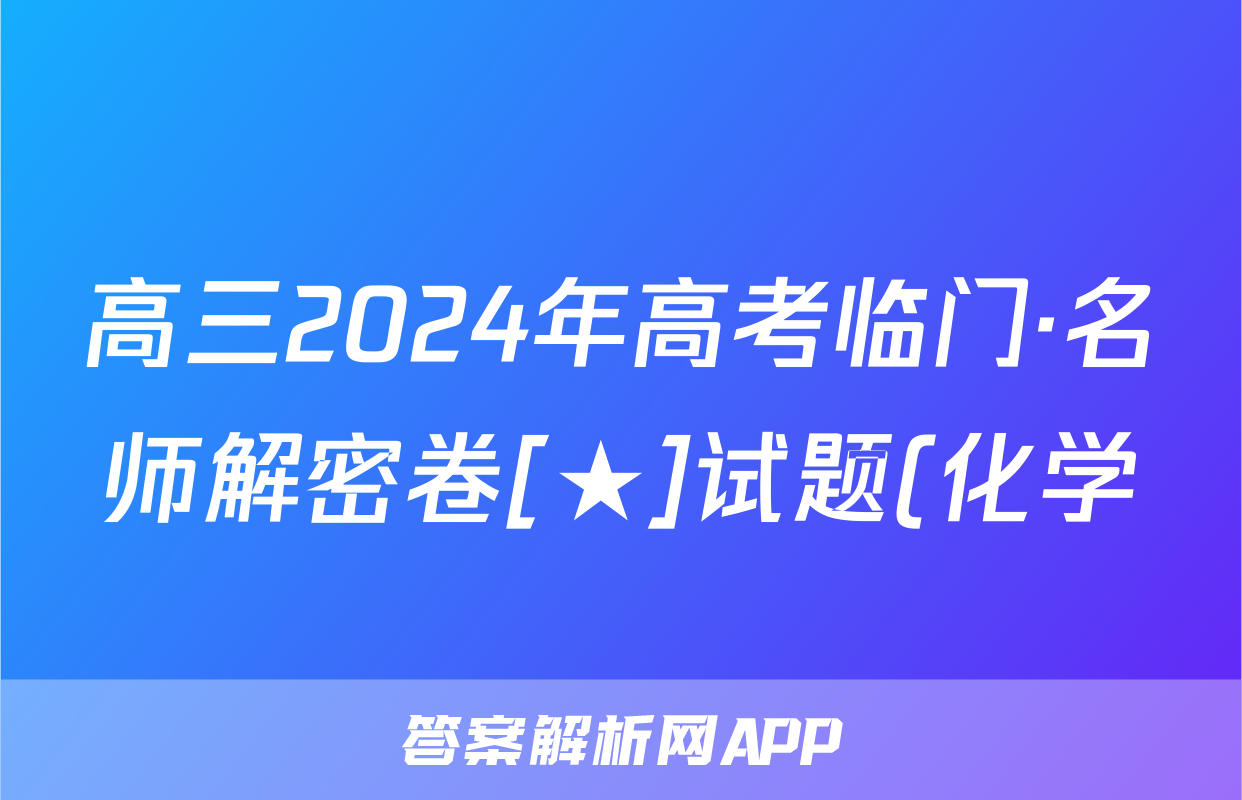 高三2024年高考临门·名师解密卷[★]试题(化学)