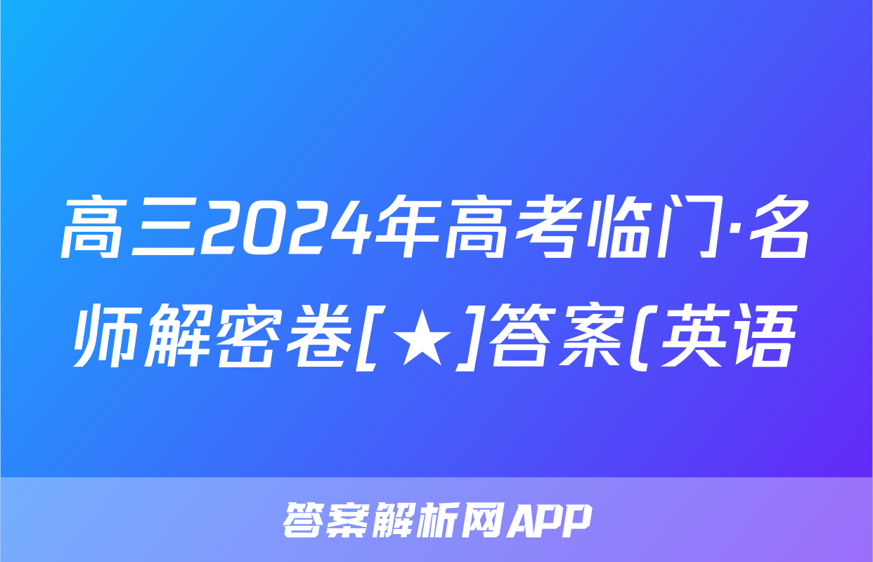 高三2024年高考临门·名师解密卷[★]答案(英语)正在持续更新,本期2024衡中同卷单元卷答案网为大家整理了相关试题及答案,供大家查缺补漏,高效提升成绩。