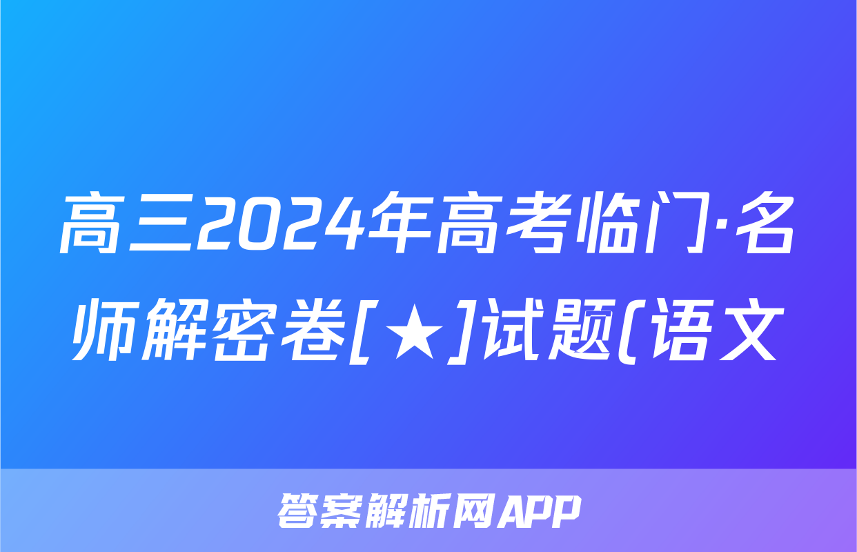 高三2024年高考临门·名师解密卷[★]试题(语文)