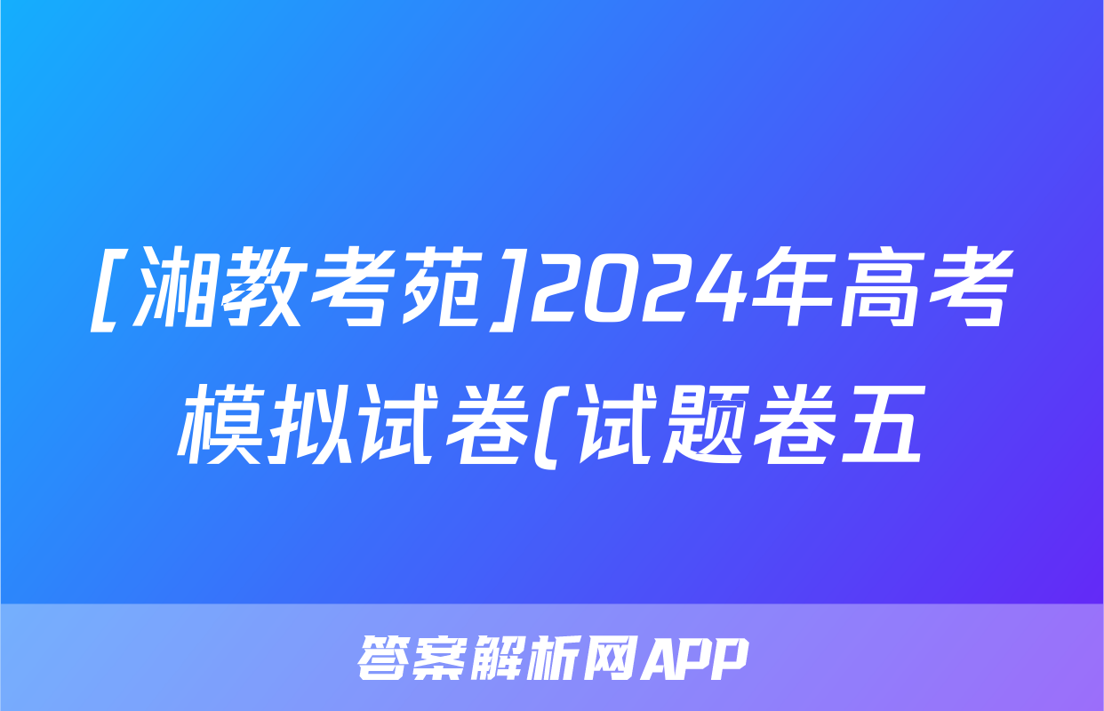 1、[湘教考苑]2024年高考模拟试卷(试题卷五)答案(地理)