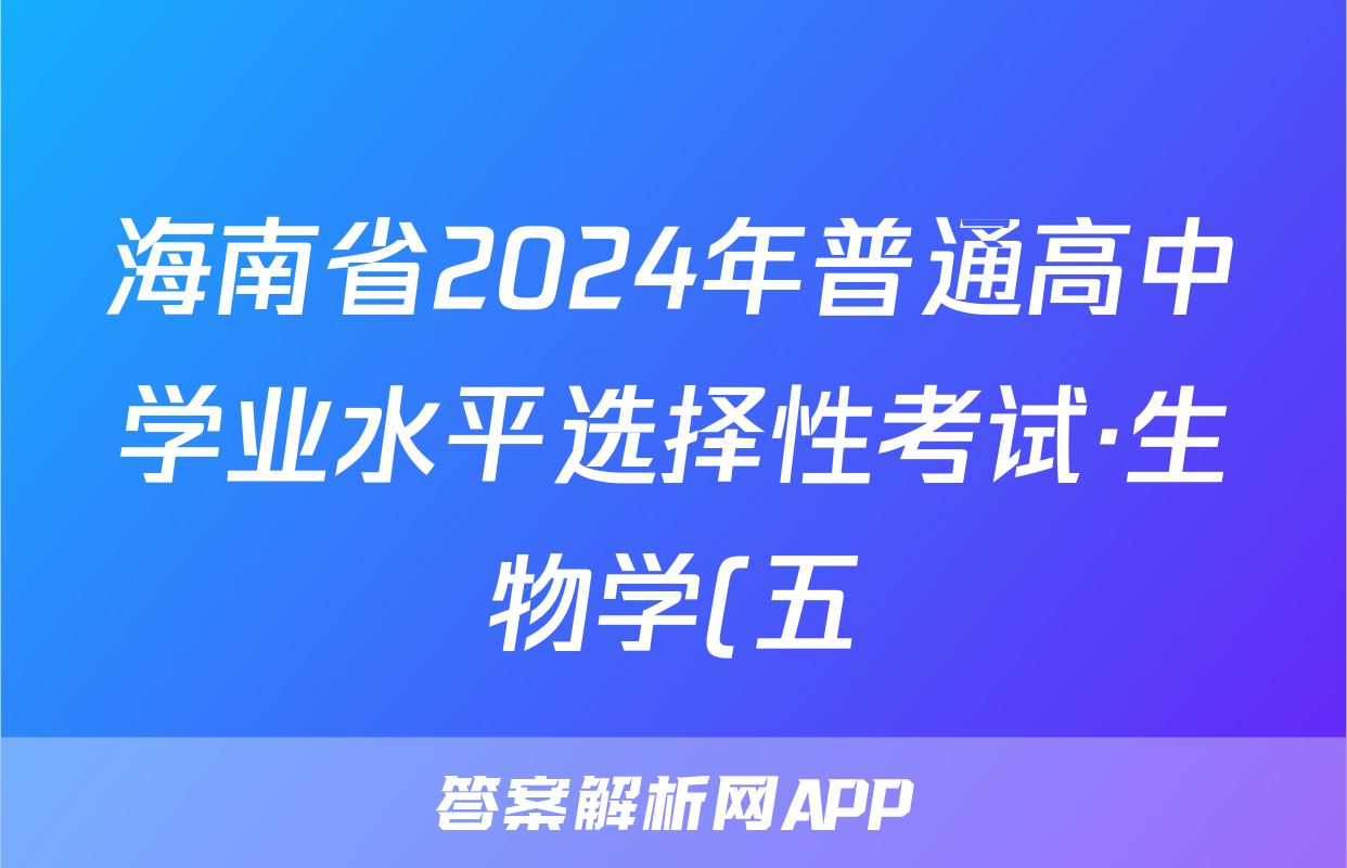 海南省2024年普通高中学业水平选择性考试·生物学(五)5[24·(新高考)ZX·MNJ·生物学·HAIN]答案