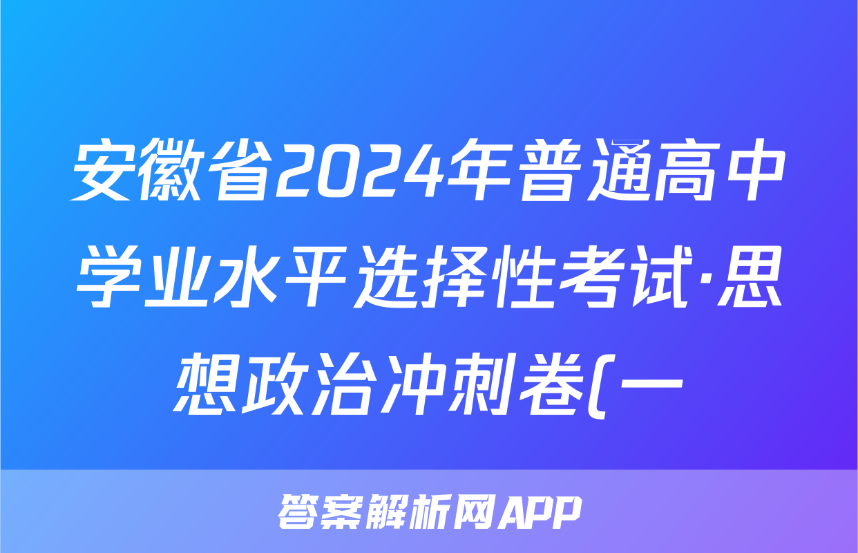 安徽省2024年普通高中学业水平选择性考试·思想政治冲刺卷(一)1[24·(新高考)CCJ·思想政治·AH]答案