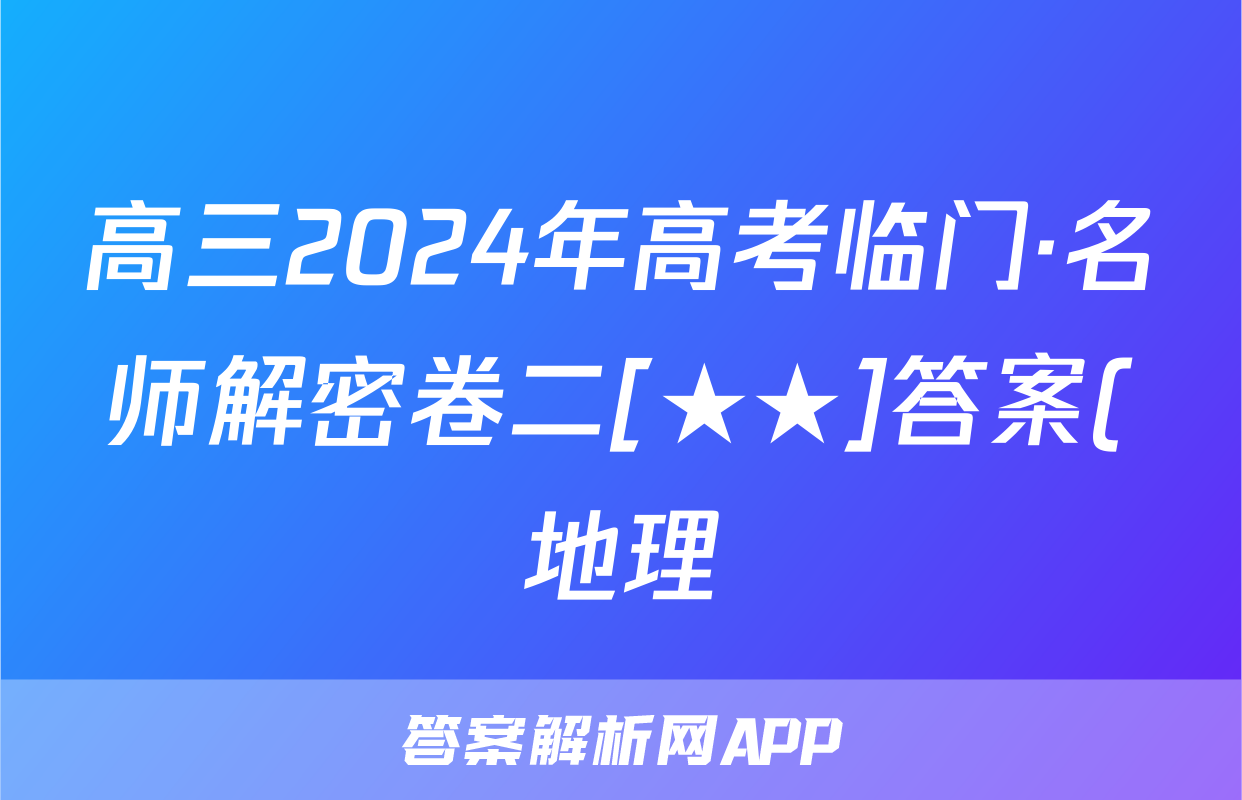 高三2024年高考临门·名师解密卷二[★★]答案(地理)