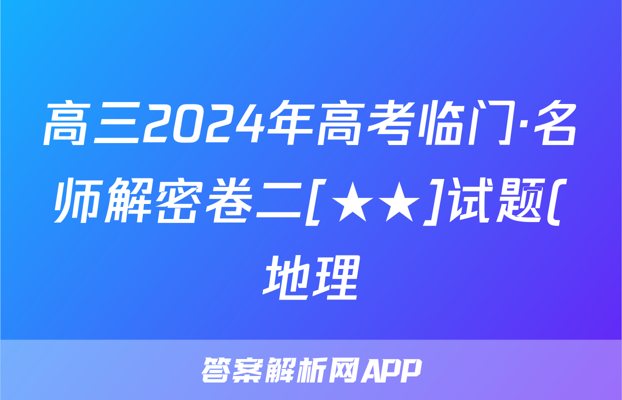 高三2024年高考临门·名师解密卷二[★★]试题(地理)