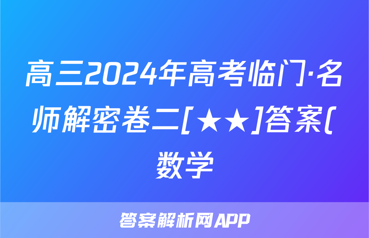 高三2024年高考临门·名师解密卷二[★★]答案(数学)