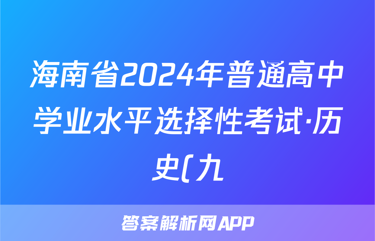 海南省2024年普通高中学业水平选择性考试·历史(九)9[24·(新高考)ZX·MNJ·历史·HAIN]答案
