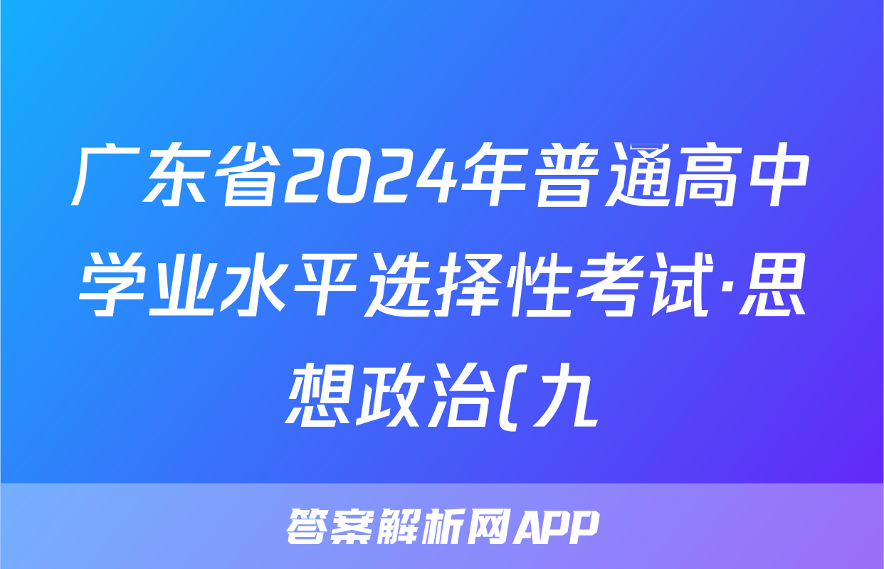 广东省2024年普通高中学业水平选择性考试·思想政治(九)9[24·(新高考)ZX·MNJ·思想政治·G DONG]试题