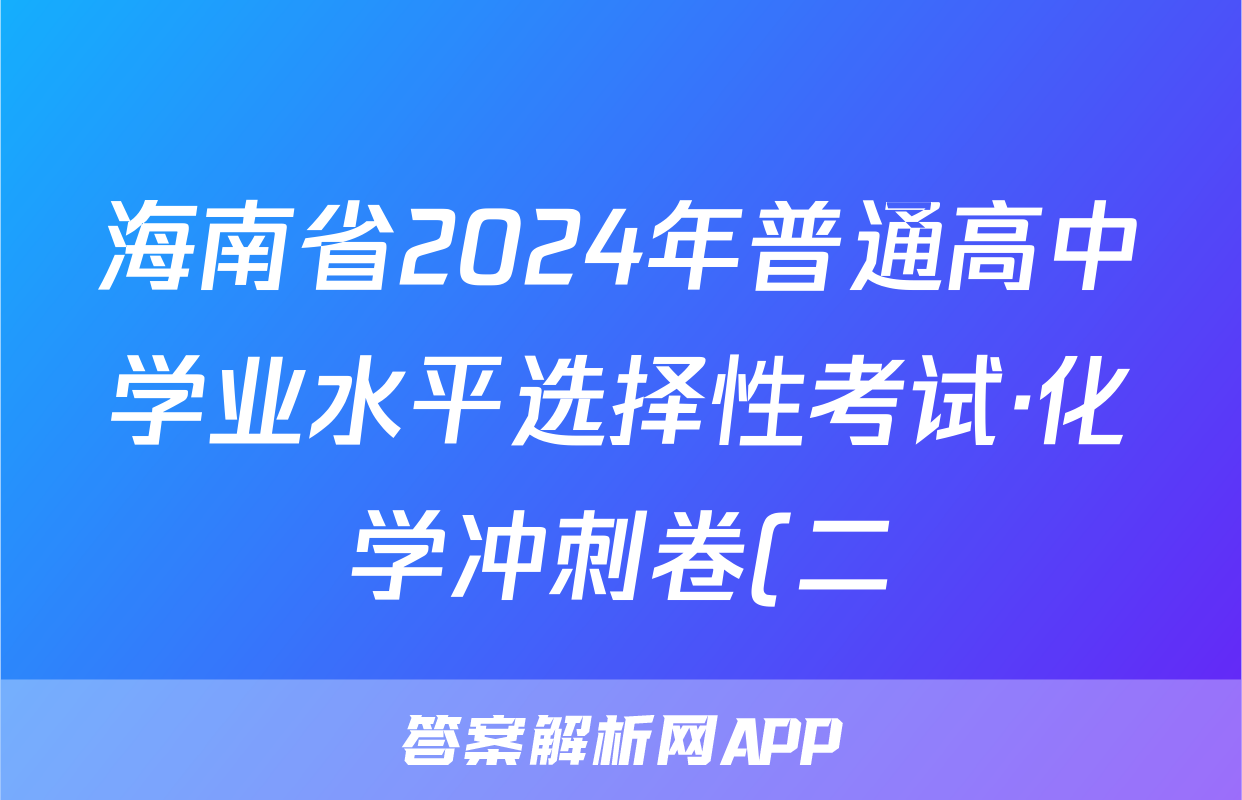 海南省2024年普通高中学业水平选择性考试·化学冲刺卷(二)2[24·(新高考)CCJ·化学·HAIN]答案