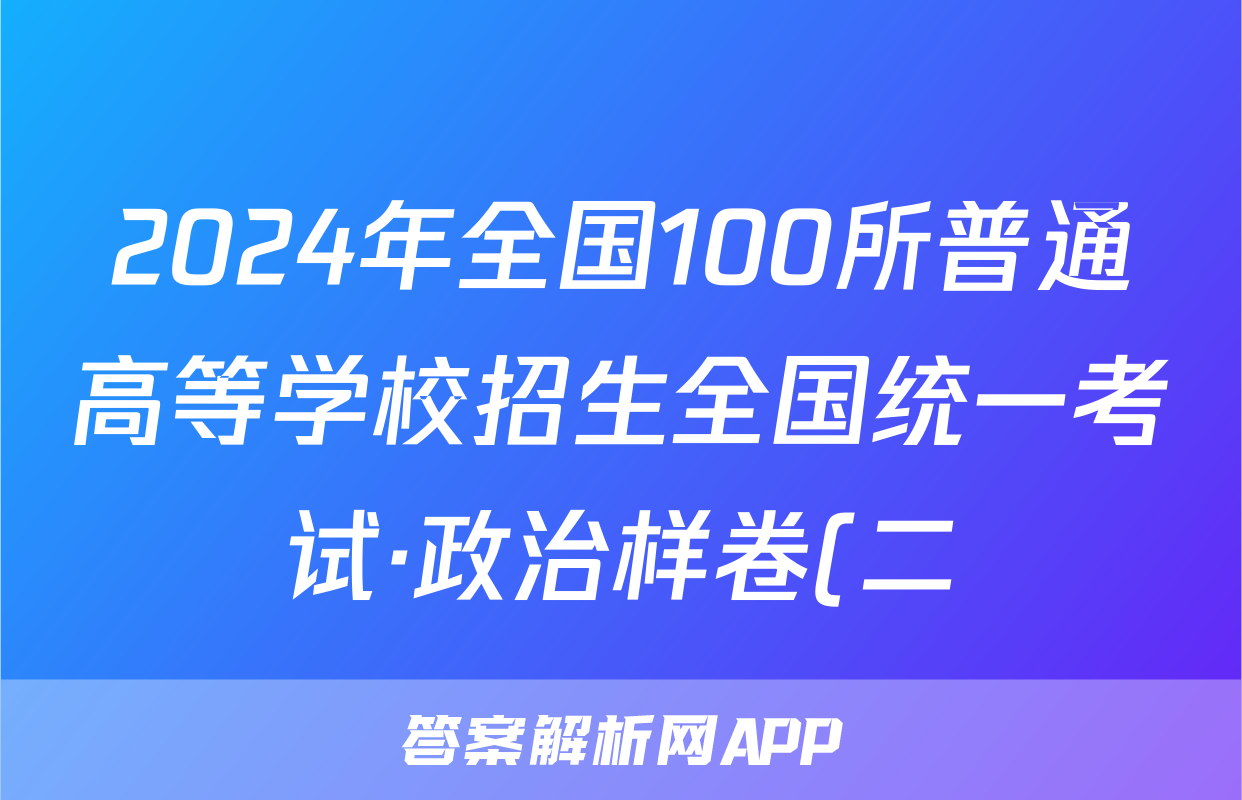 2024年全国100所普通高等学校招生全国统一考试·政治样卷(二)2[24·(新高考)高考样卷·政治·Y]试题