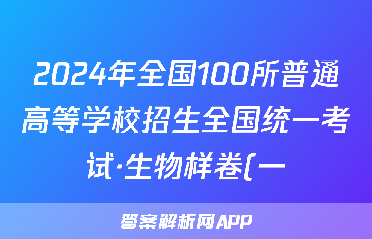 2024年全国100所普通高等学校招生全国统一考试·生物样卷(一)1[24·(新高考)高考样卷·生物·Y]答案