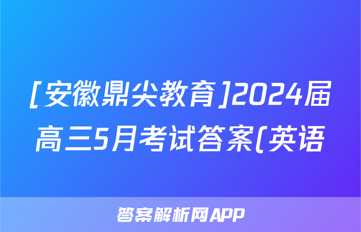 [安徽鼎尖教育]2024届高三5月考试答案(英语)