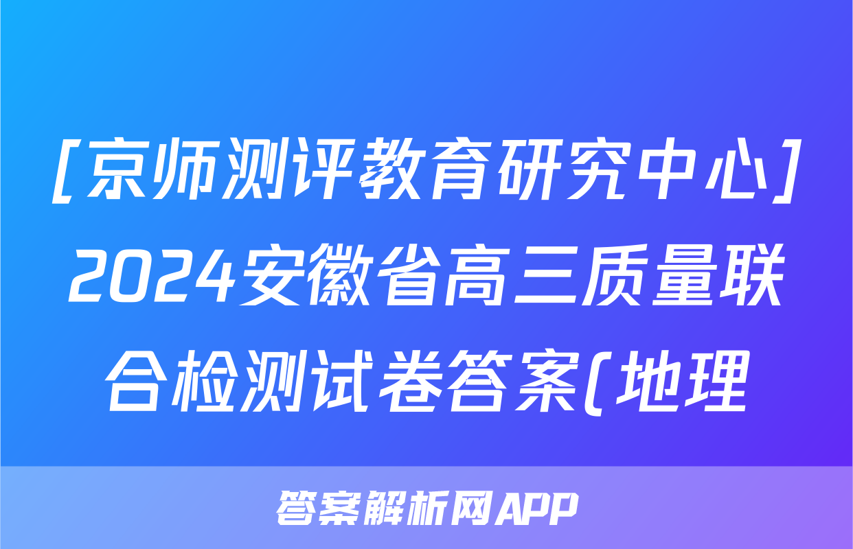 [京师测评教育研究中心]2024安徽省高三质量联合检测试卷答案(地理)