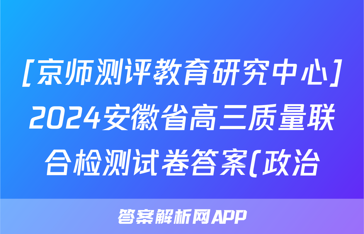[京师测评教育研究中心]2024安徽省高三质量联合检测试卷答案(政治)