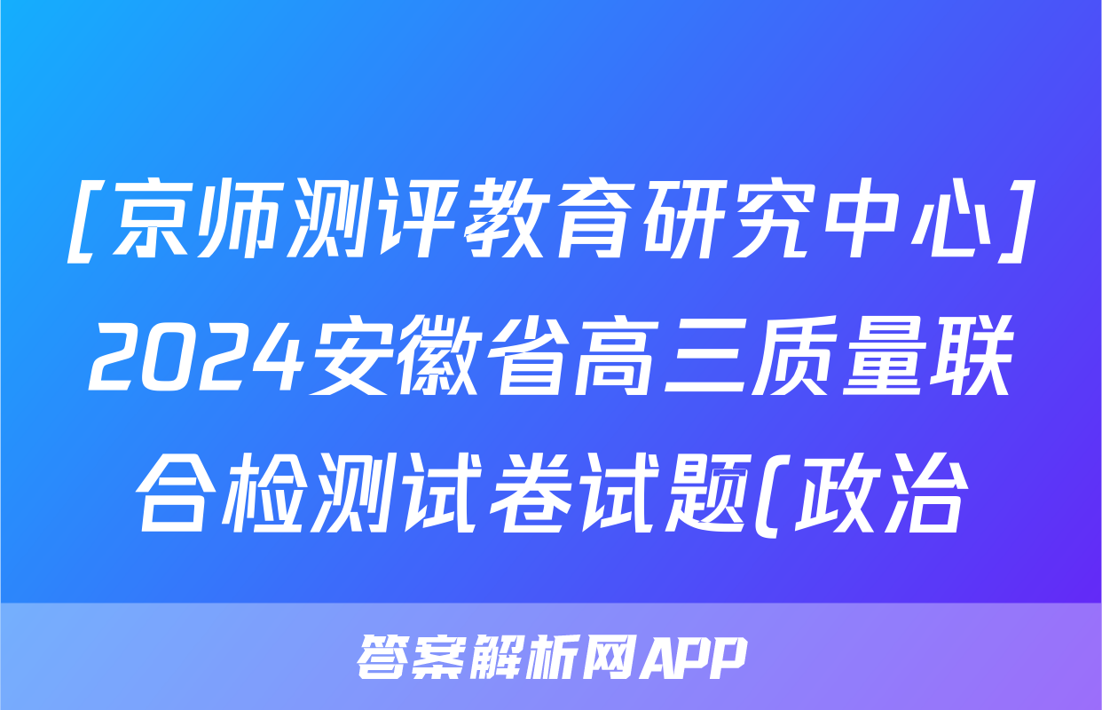 [京师测评教育研究中心]2024安徽省高三质量联合检测试卷试题(政治)