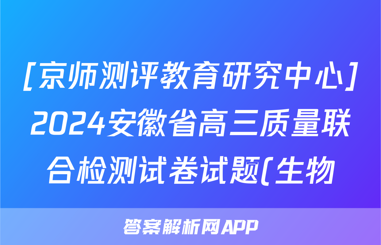 [京师测评教育研究中心]2024安徽省高三质量联合检测试卷试题(生物)