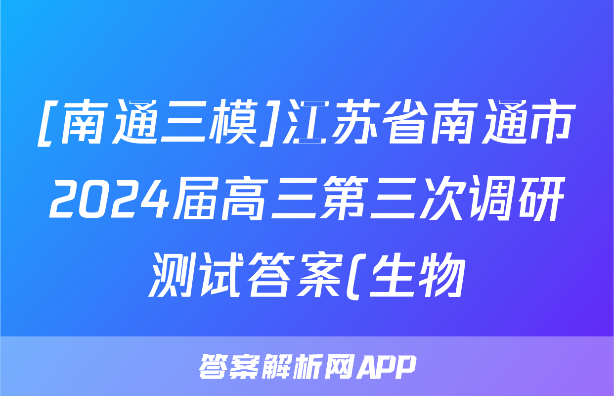[南通三模]江苏省南通市2024届高三第三次调研测试答案(生物)