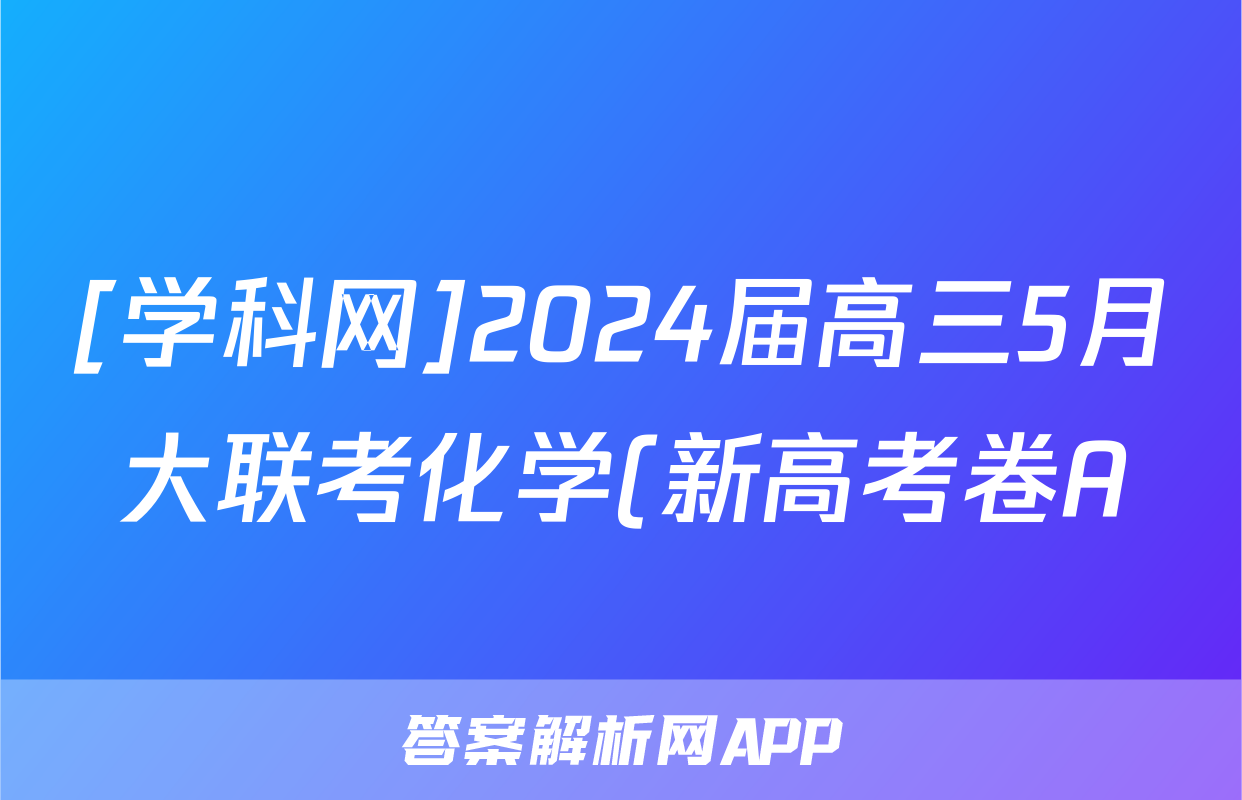 [学科网]2024届高三5月大联考化学(新高考卷A)(新教材)试题