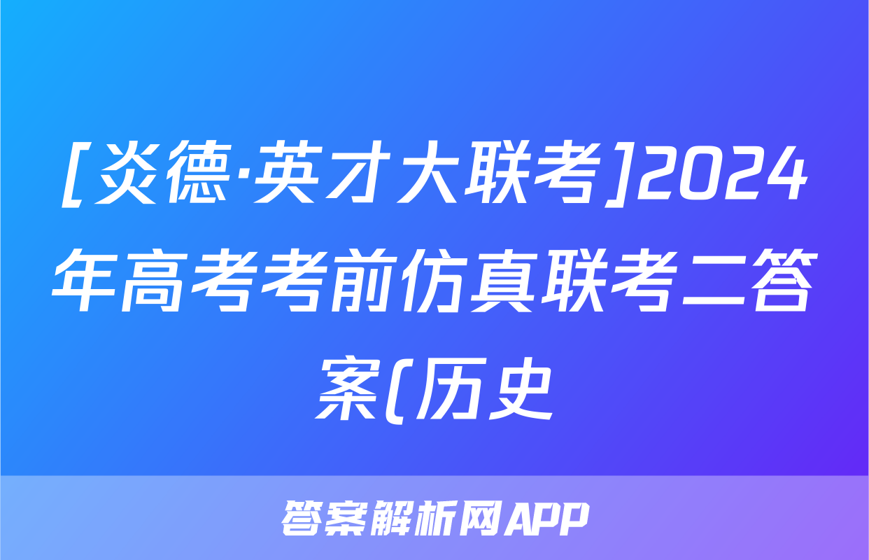 [炎德·英才大联考]2024年高考考前仿真联考二答案(历史)