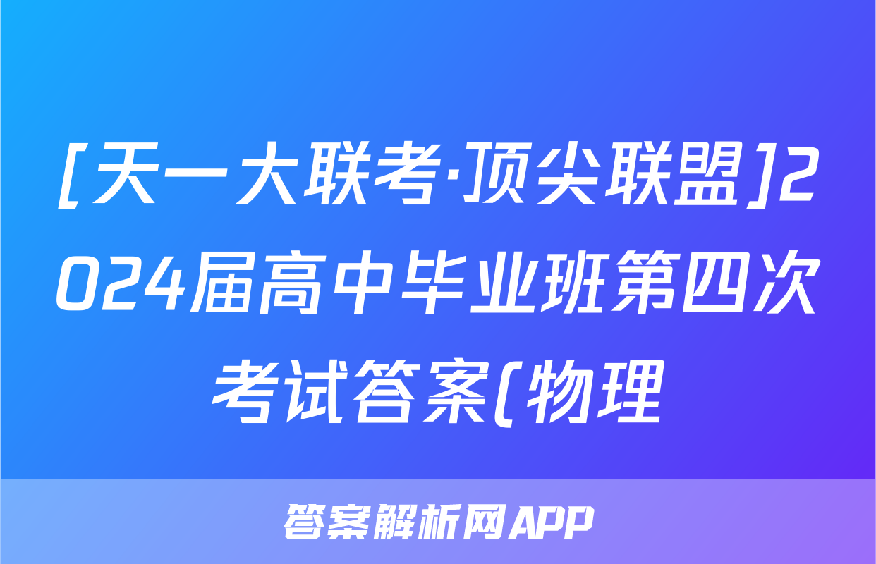 [天一大联考·顶尖联盟]2024届高中毕业班第四次考试答案(物理)