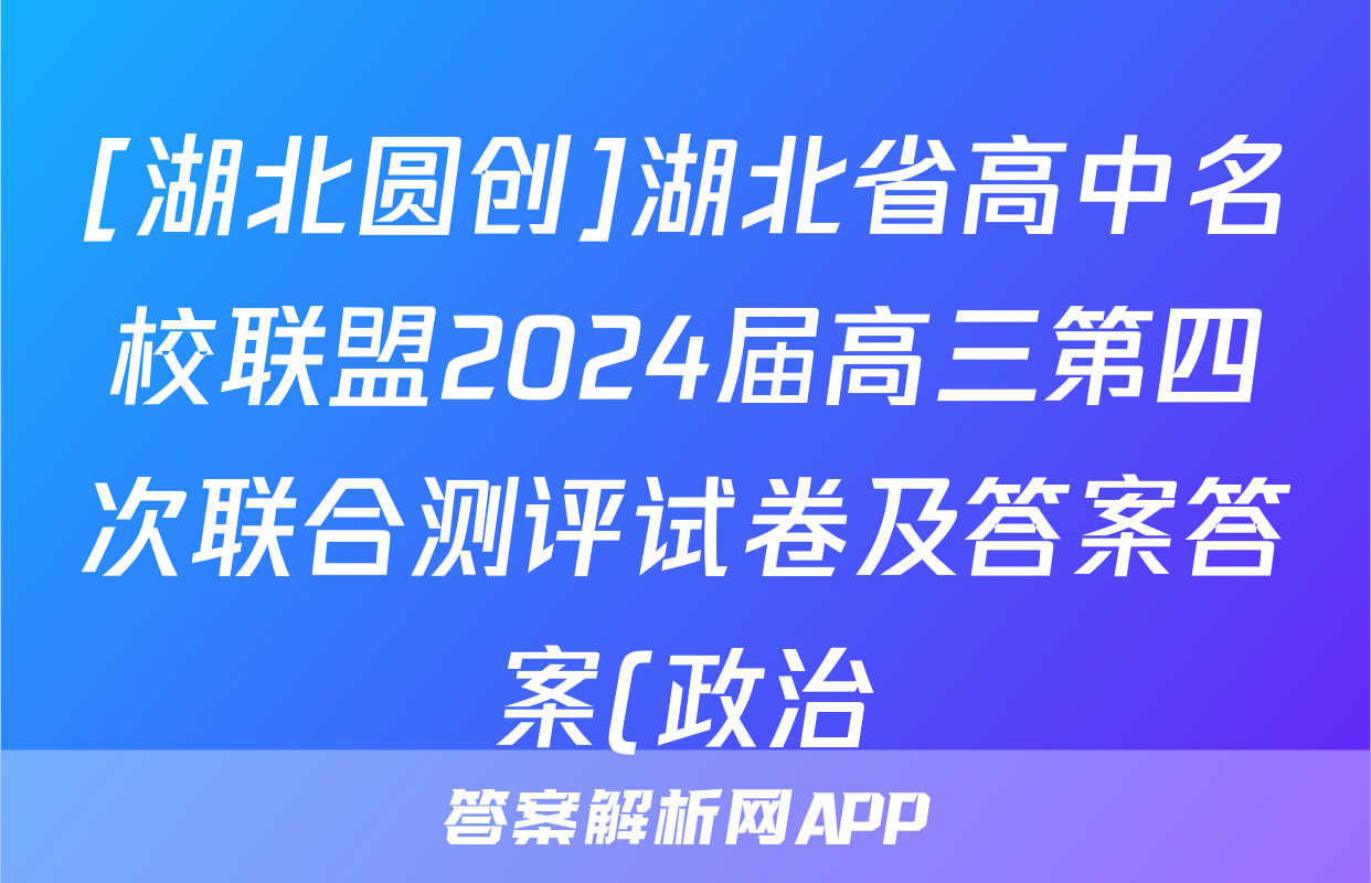 2、湖北圆创湖北省高中名校联盟2024届高三第四次联合测评试题(政治)