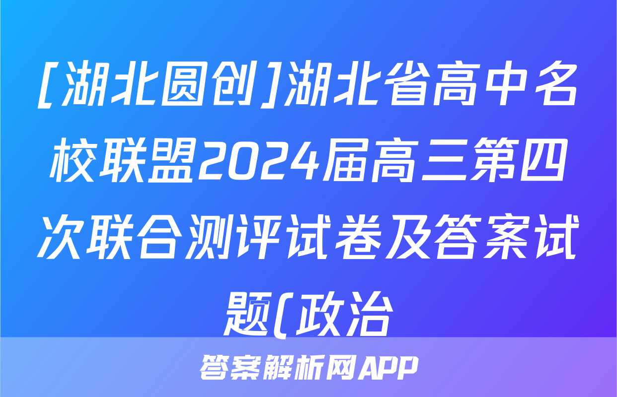 3、湖北圆创湖北省高中名校联盟2024届高三第四次联合测评试题(政治)