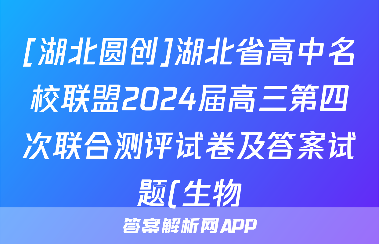 [湖北圆创]湖北省高中名校联盟2024届高三第四次联合测评试卷及答案试题(生物)