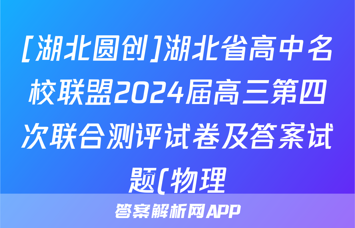 1、湖北圆创湖北省高中名校联盟2024届高三第四次联合测评试题(物理)