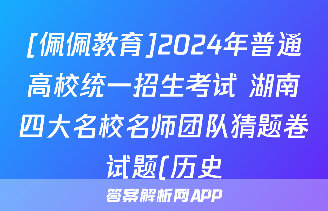 [佩佩教育]2024年普通高校统一招生考试 湖南四大名校名师团队猜题卷试题(历史)