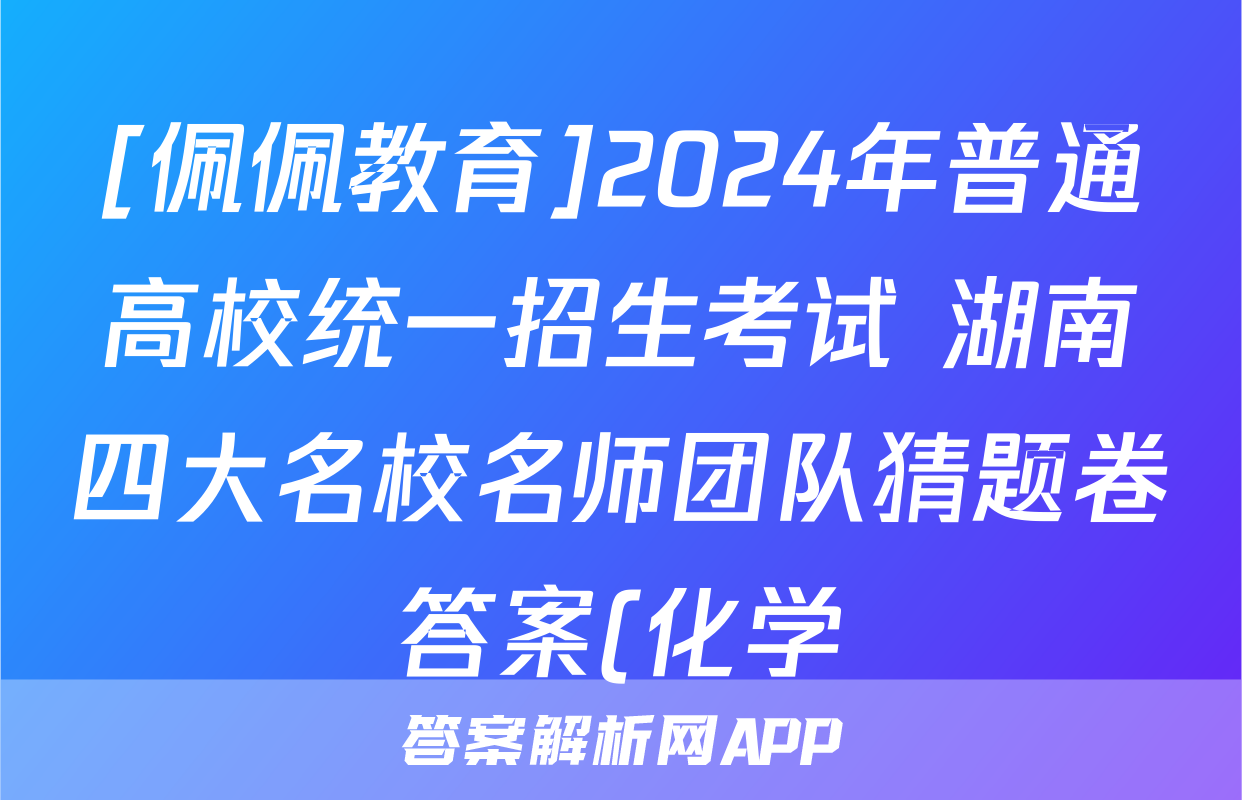 [佩佩教育]2024年普通高校统一招生考试 湖南四大名校名师团队猜题卷答案(化学)正在持续更新,本期2024衡中同卷单元卷答案网为大家整理了相关试题及答案,供大家查缺补漏,高效提升成绩。