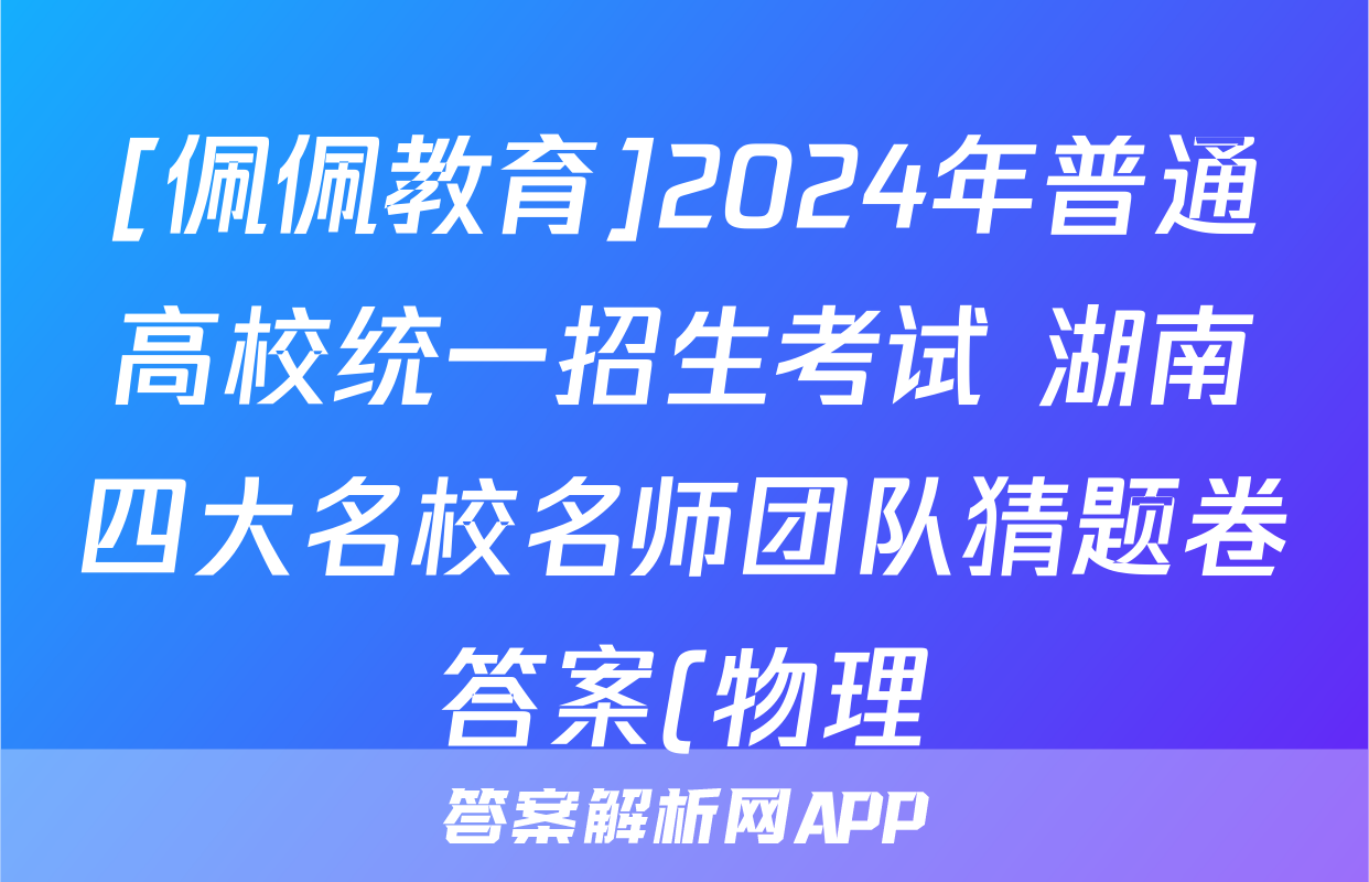 [佩佩教育]2024年普通高校统一招生考试 湖南四大名校名师团队猜题卷答案(物理)正在持续更新,本期2024衡中同卷单元卷答案网为大家整理了相关试题及答案,供大家查缺补漏,高效提升成绩。