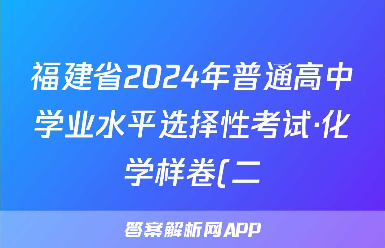 福建省2024年普通高中学业水平选择性考试·化学样卷(二)2[24·(新高考)高考样卷·化学·FJ]答案